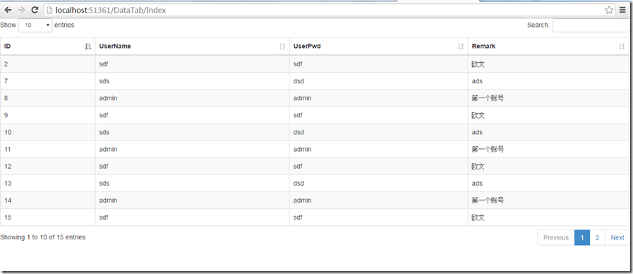 2.2jquery Datatables在asp.net MVC下實(shí)現(xiàn)過(guò)程: