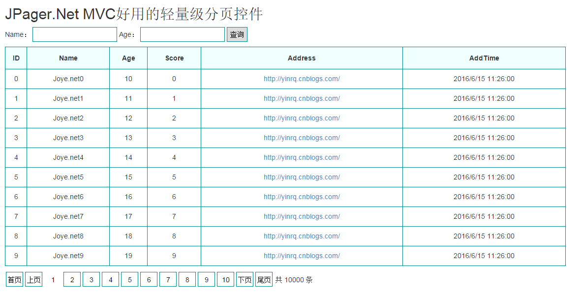 JPager.Net MVC好用的輕量級分頁控件,實現(xiàn)非常簡單,使用也非常簡單。