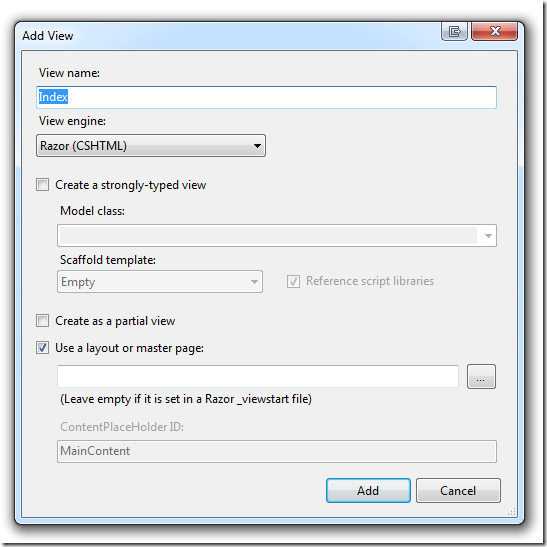 下圖顯示了已被創(chuàng)建的Index.cshtml文件: