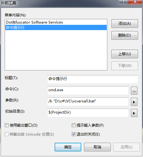 巨人網(wǎng)絡(luò)通訊聲明:本文標(biāo)題《Microsoft Visual Studio 2010下如何添加命令提示行》,本文關(guān)鍵詞 Microsoft,Visual,Studio,2010下,;如發(fā)現(xiàn)本文內(nèi)容存在版權(quán)問(wèn)題,煩請(qǐng)?zhí)峁┫嚓P(guān)信息告之我們,我們將及時(shí)溝通與處理。本站內(nèi)容系統(tǒng)采集于網(wǎng)絡(luò),涉及言論、版權(quán)與本站無(wú)關(guān)。