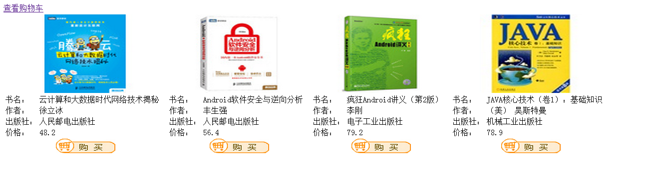3、 在Default.aspx中,通過DataList控件展示數(shù)據(jù)庫中的所有數(shù)據(jù),以行為主序,每行3列,單擊購買按鈕時,將商品的ID和數(shù)量保存到HashTable中,并將HashTable放置到Session中。