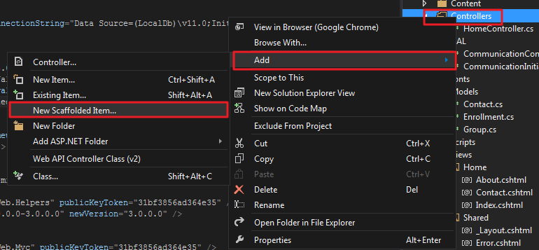 在Models文件夾下,分別創(chuàng)建Contact.cs、Enrollment.cs、Group.cs三個類