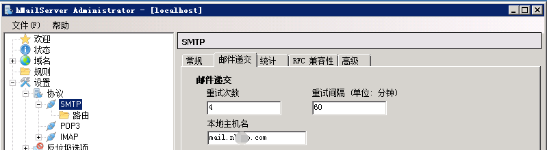 四、使用hMailServer收發(fā)郵件:hMailServer的安裝和漢化自行搞定。這里一定要記住,使用hMailServer必須同時使用SMTP和POP3,并且停止系統(tǒng)自帶的SMTP服務(wù),否則無法接收郵件。1.添加域名:
