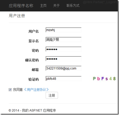 再在用戶控制器中添加public ActionResult Register(RegisterViewModel register)用來處理用戶提交的注冊數(shù)據(jù)