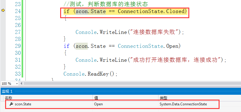 Console.WriteLine("成功打開連接數(shù)據(jù)庫(kù),連接成功");