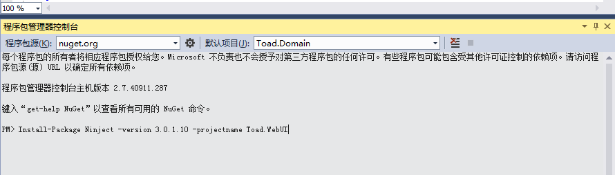 Install-Package Ninject.MVC3 -Version 3.0.0.6 -projectname Toad.WebUI