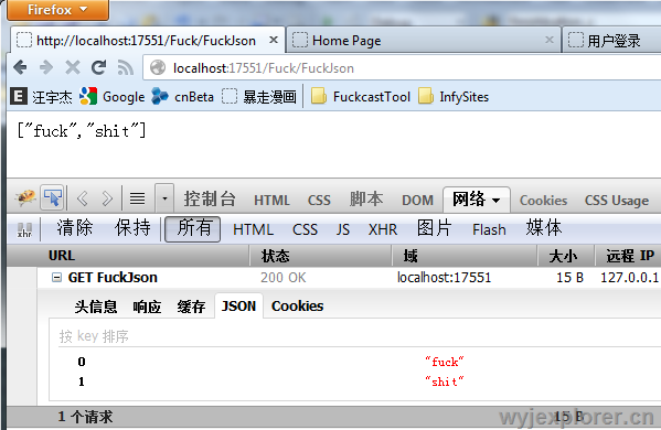 比如FuckController中添加有個返回JsonResult類型的方法FuckJson():