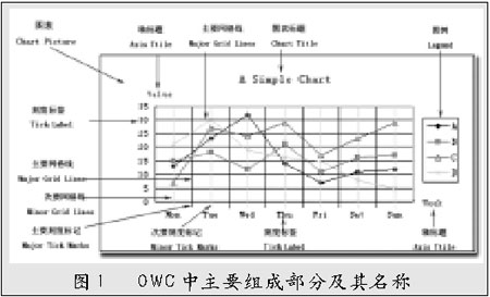 一張完整的圖表由若干個元素組成,我們必須對它們有所了解,才能隨心所欲、充分自如地對圖表進行全方位的控制,也才能更好地理解本程序。筆者制作了一張簡易的圖表,在圖中標注了程序涉及到的主要部位和元素的名稱,借此幫助讀者掌握OWC以及理解本文所引用的代碼。
