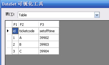 從圖中可以看出excel文件中的第一行變成了DataSet中的列名,這正是系統(tǒng)的默認(rèn)設(shè)置。