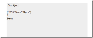 上面代碼向Handler.ashx發(fā)送一Post請(qǐng)求,比且?guī)в袇?shù){ID:'1'},可以看到結(jié)果,如果用調(diào)試工具可以發(fā)現(xiàn),得到的result是一個(gè)json格式的字符串,也就是往Response寫的對(duì)象序列化后的結(jié)果。這樣就實(shí)現(xiàn)了比較專業(yè)些的方式調(diào)用Ajax,但是有一個(gè)問題依舊存在,HttpHandler會(huì)自動(dòng)調(diào)用ProcessRequest方法,但是也只能調(diào)用該方法,如果想調(diào)用不同方法只能像普通頁面那樣傳遞一個(gè)參數(shù)表明調(diào)用哪個(gè)方法,或者寫不同的Handler文件。