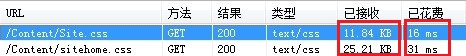 在 ASP.NET MVC 4 中可捆綁多個(gè) css 和 js 文件以減少HTTP請(qǐng)求,并對(duì) css 和 js 文件進(jìn)行壓縮(縮?。?,這樣可提高網(wǎng)站的加載速度。我們選取博客園的 css 文件來(lái)看看,在 ASP.NET MVC 4 前,我們引入 css 方法如下: