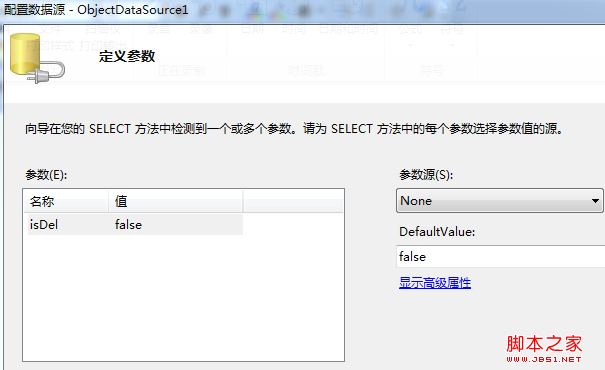 ObjectDataSource用來(lái)將一個(gè)類(lèi)做為數(shù)據(jù)源,TypeName屬性為數(shù)據(jù)源類(lèi)的全名,有DeleteMethod(刪除方法)、InsertMethod(新增方法)、SelectMethod(查詢方法)、UpdateMethod(修改方法)等幾個(gè)屬性,分別為類(lèi)中刪除、插入、查詢、更新數(shù)據(jù)的方法名,這些方法可能有參數(shù),參數(shù)的值是通過(guò)DeleteParameters、UpdateParameters、InsertParameters等嵌套節(jié)點(diǎn)設(shè)置的。