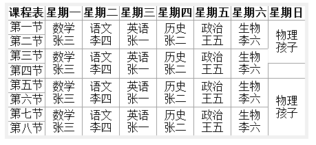 GridView,ASP.NET中很常用的數(shù)據(jù)顯示控件,這里,我將用這個(gè)控件來(lái)實(shí)現(xiàn)課程表的顯示。首先說(shuō)說(shuō)課程表的顯示與普通記錄的顯示有何不同?這里所說(shuō)的普通記錄是指直接從數(shù)據(jù)庫(kù)中查詢出來(lái)的、沒(méi)有經(jīng)過(guò)任何處理的記錄。通常,我們用GridView顯示這些普通記錄,只需直接將這些記錄表綁定到GridView中即可。但是,課程表的顯示可不是這么簡(jiǎn)單,它需要將普通記錄繼續(xù)加工,需要根據(jù)記錄中具體的數(shù)據(jù)來(lái)確定數(shù)據(jù)需要顯示在哪一行、哪一列,而且需要根據(jù)課程開(kāi)始時(shí)間和結(jié)束時(shí)間動(dòng)態(tài)合并單元格,最后才是數(shù)據(jù)的顯示。這就是課程表顯示的難點(diǎn)之所在。好了,下面就看看我是如何實(shí)現(xiàn)的吧。
