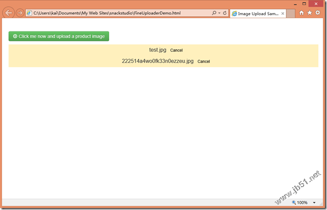 ok.這時基本關于Fine Uploader客戶端初始化和控制操作選項基本完成.當我們需要上傳操作時.如果IsAuto=false時可以通過已經(jīng)定義qq.FineUploader對象的uploadStoreFiles()方式手工觸發(fā)上傳操作: