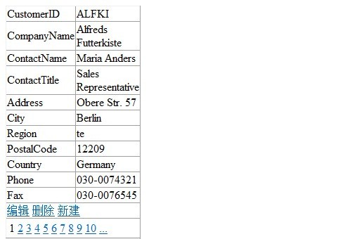 2、DetailsView 在頁面上的顯示同樣以表格的形式