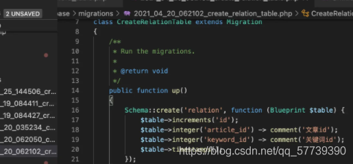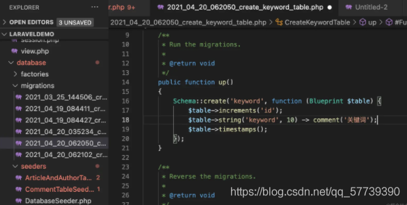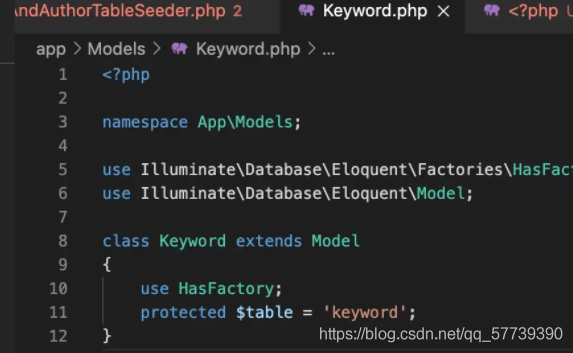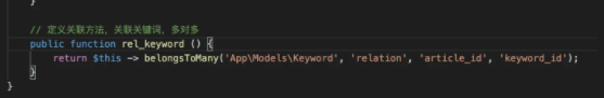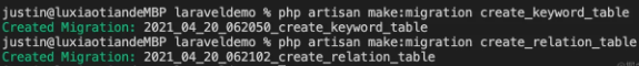 上述語法提及到的關(guān)系鍵是指在關(guān)系表中的字段名。 創(chuàng)建關(guān)鍵詞模型: php artisan make:model Keyword