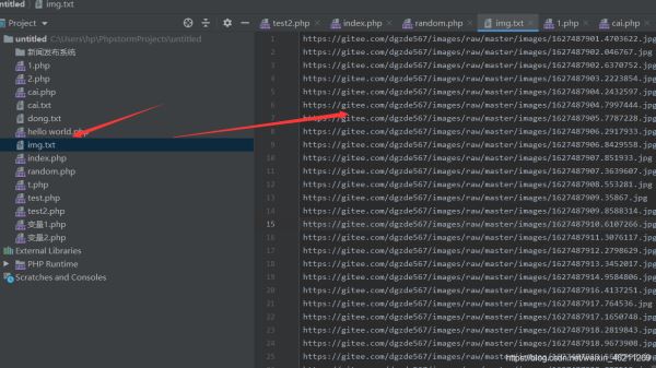 代表讀取img.txt這個(gè)文檔,圖片鏈接在txt文檔,這個(gè)文檔要和php文件在同級(jí)目錄,如圖一所示。
