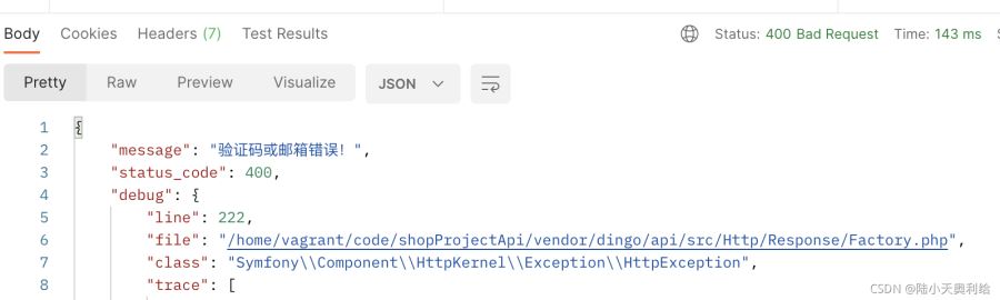 return $this->response->errorBadRequest('驗證碼或郵箱錯誤!');