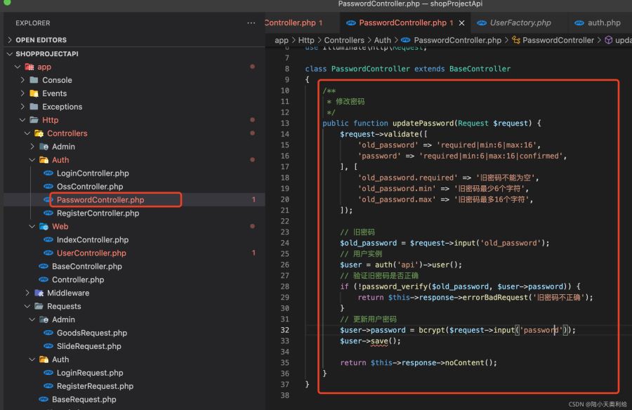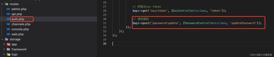 $api->post('password/update', [PasswordController::class, 'updatePassword']);