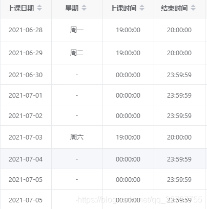 (例子,只用來展示數(shù)據(jù)結(jié)構(gòu))假如總共5節(jié)課時,從6-25日開始排課,每周一、周六上課: