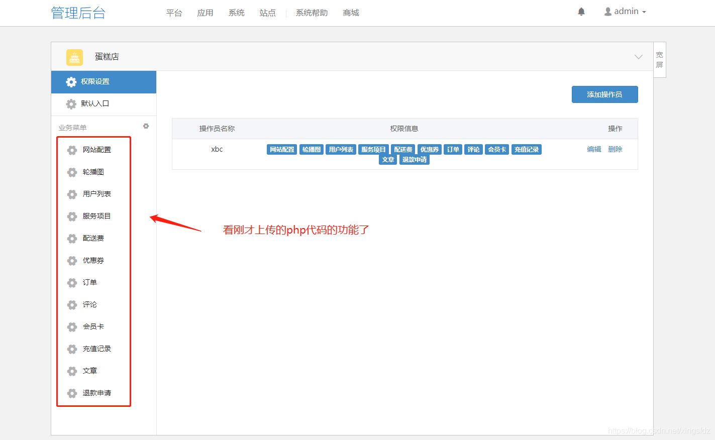 后臺管理配置: