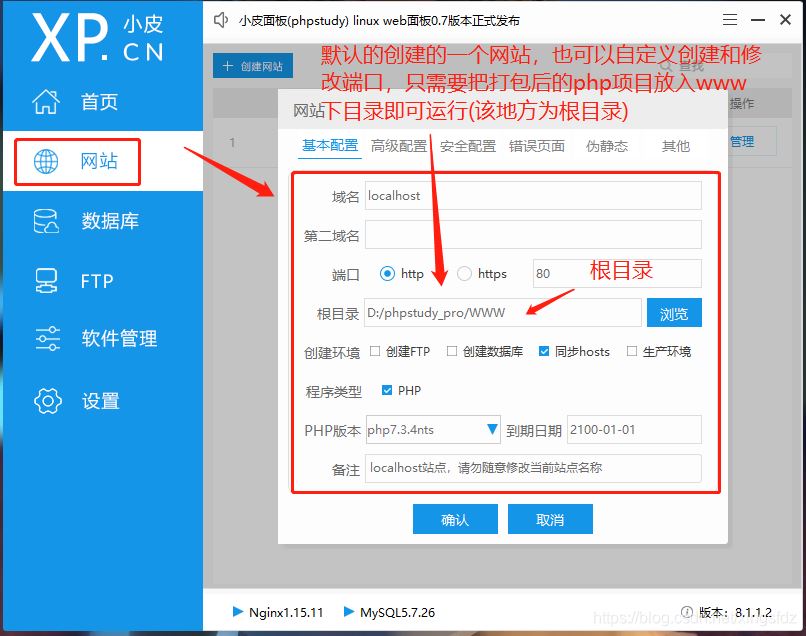 以上可視化界面操作,很簡單,把php項目往根目錄一放,一鍵啟動,即可ip(或者域名)+端口訪問即可。