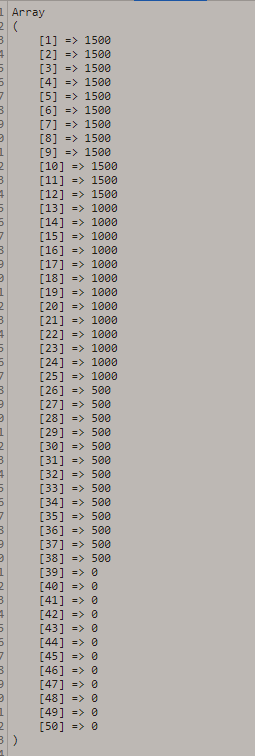 $arr[$i]=bcmul(bcdiv($reward['Leaderboard'],$num,2),(51-$i),0);//bcmul(bcdiv((51-$i),$num,2),$reward['Leaderboard'],0);