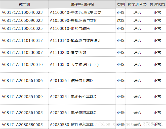我們嘗試獲取表的信息,這里,我們就用某校的課表來(lái)代替: