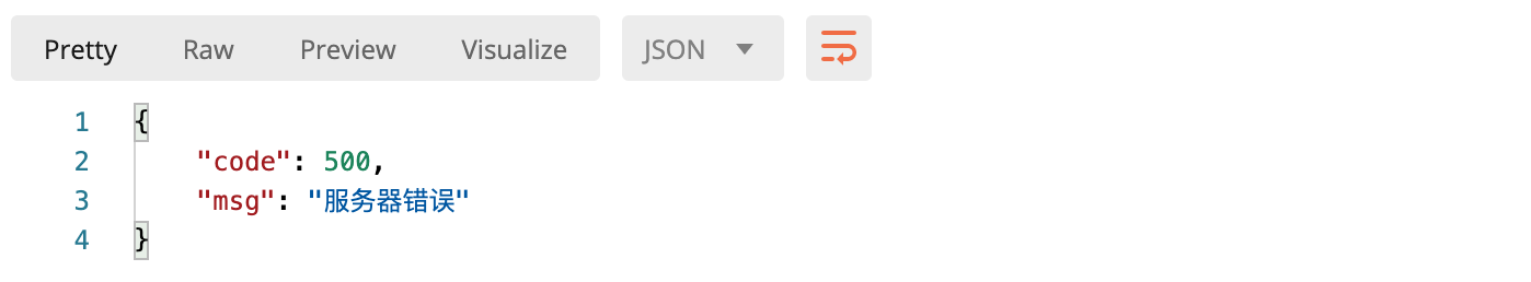 這樣我們就可以根據(jù)APP_DEBUG的值設(shè)置是否返回JSON格式的數(shù)據(jù)了,現(xiàn)在我們把.env的APP_DEBUG的值設(shè)為false來測試一下,然后我們故意把代碼寫錯,通過postman或瀏覽器來訪問接口