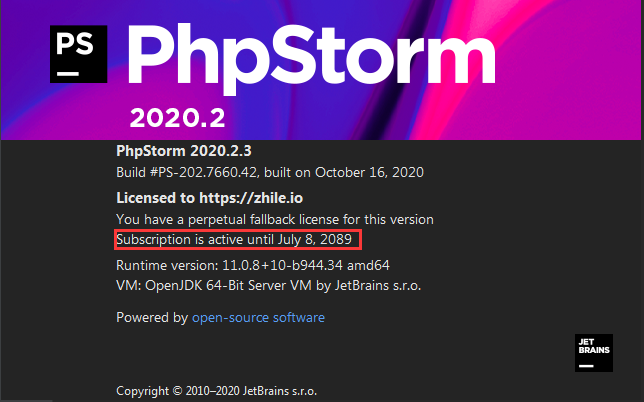 2020年11月份phpstorm最新激活碼分享給大家,如果你的phpstorm過(guò)期了或是安裝最新版的phpstorm2020.2.3可以使用下面的phpstorm激活碼,我的phpstorm2020.2.3激活成功