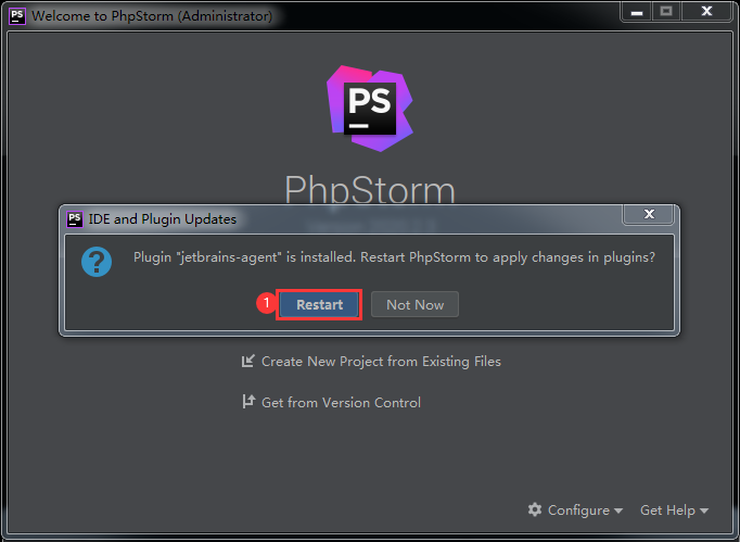 點(diǎn)擊上圖中的標(biāo)注1“Restart”按鈕重啟phpstorm,重新啟phpstorm時(shí)彈出如下圖所示的JetbrainsAgent配置助手窗口