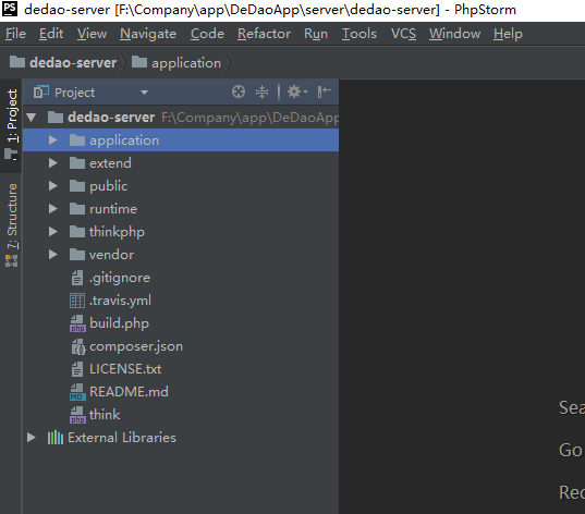 ⑥使用 PHPstorm 集成 thinkPHP、Apache: 1)使用 PHPstorm 打開 thinkPHP 項目,我這里更名為 dedao-server;