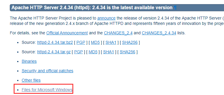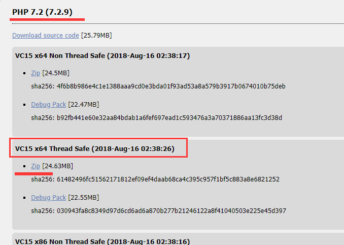 這里需要注意,下載的 PHP 版本信息,因為在接下來下載 Apache 時,需要與之對應,不然在整合 Apache + PHP過程中你,將會缺少相關(guān)的配置文件信息。