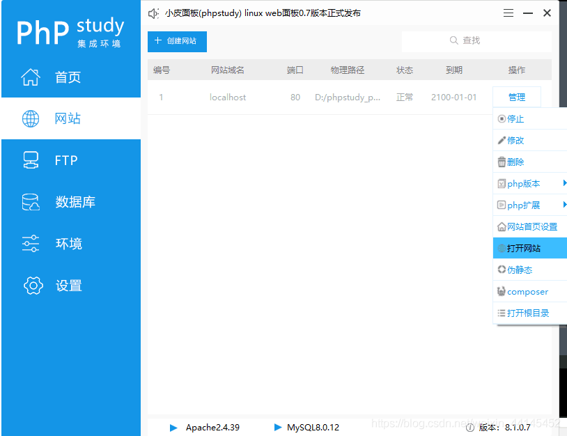 到此這篇關(guān)于2020最新版 PhpStudy V8.1版本下載安裝使用詳解的文章就介紹到這了,更多相關(guān)PhpStudy安裝使用內(nèi)容請(qǐng)搜索腳本之家以前的文章或繼續(xù)瀏覽下面的相關(guān)文章希望大家以后多多支持腳本之家!