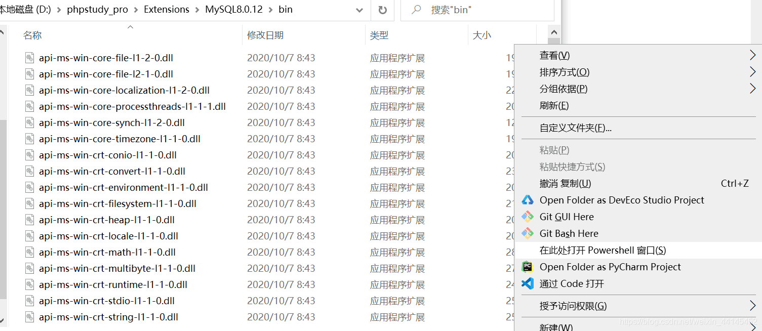 進(jìn)入bin文件夾中 ,按shift 在空白處右鍵單擊 ->在此處打開Powershell端口