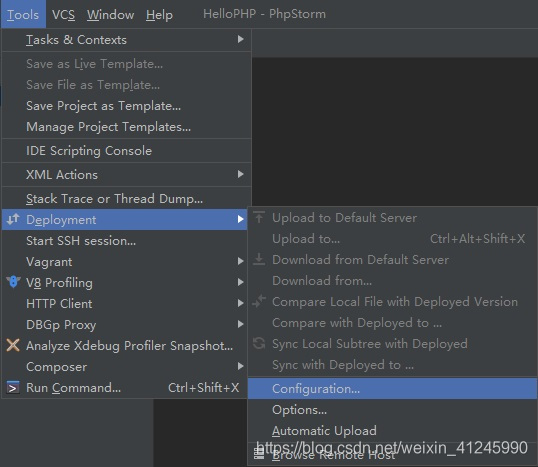 我們點(diǎn)擊“工具/部署/配置”菜單進(jìn)行本地服務(wù)配置