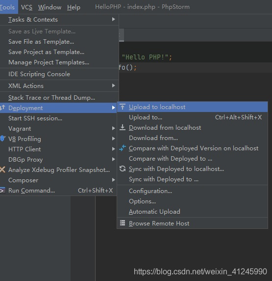 在菜單中選擇Tools->Deployment->Upload to localhost上傳工程。