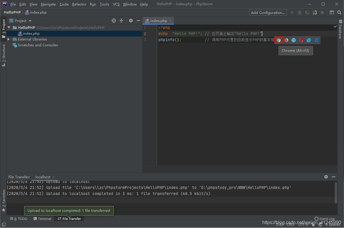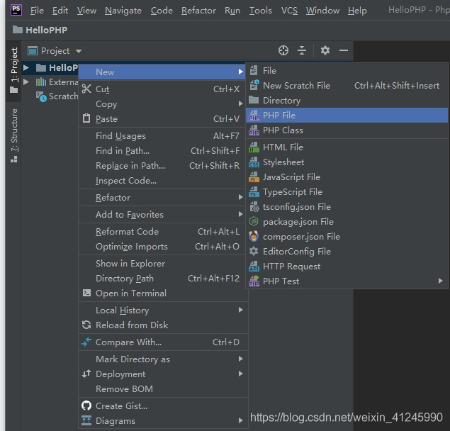 3.1、使用PhpStorm新建工程"HelloPHP"