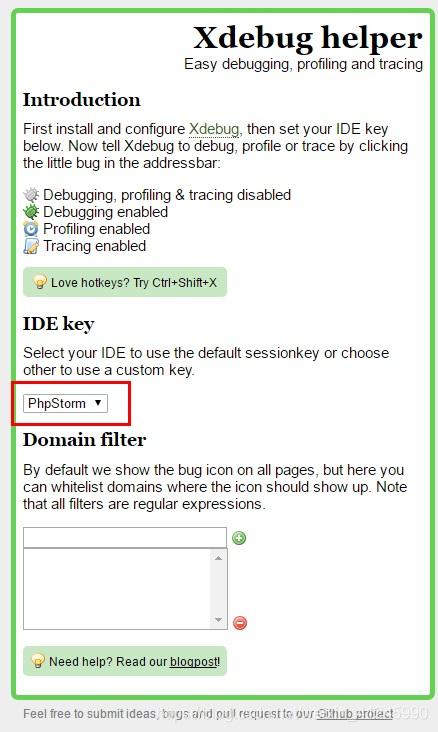 我們可以在xdebug helper中配置它,選擇phpstorm并且在右邊的框中填入phpstorm-xdebug。
