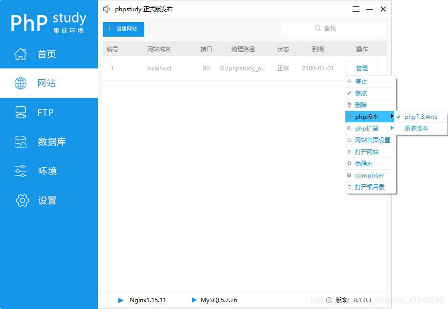 在桌面啟動(dòng)小皮進(jìn)行配置,我的配置如下: