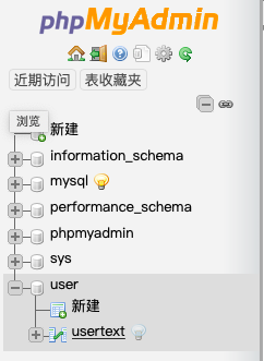 登陸myadmin后創(chuàng)建數(shù)據(jù)庫user和表單usertext: