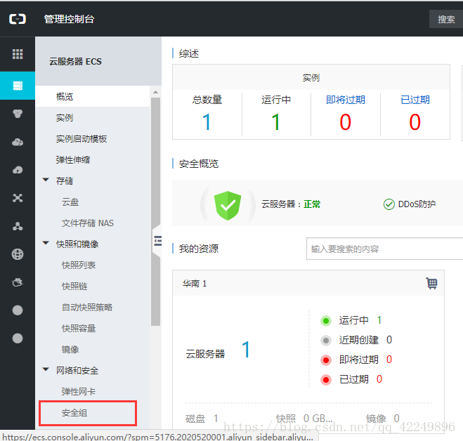 如果開放了,在去阿里云控制臺的安全組檢查是否開放: