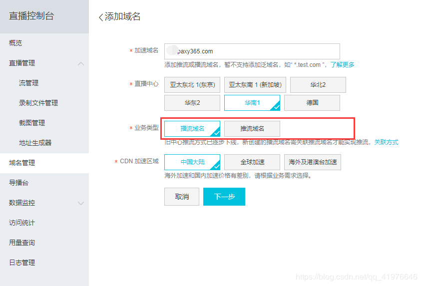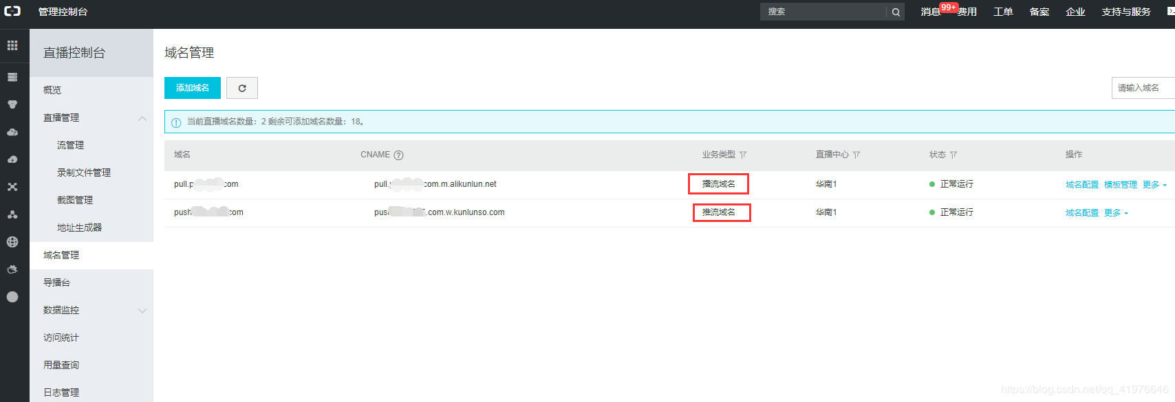 首先進(jìn)入視頻直播的控制臺(tái)>>域名管理>>添加域名