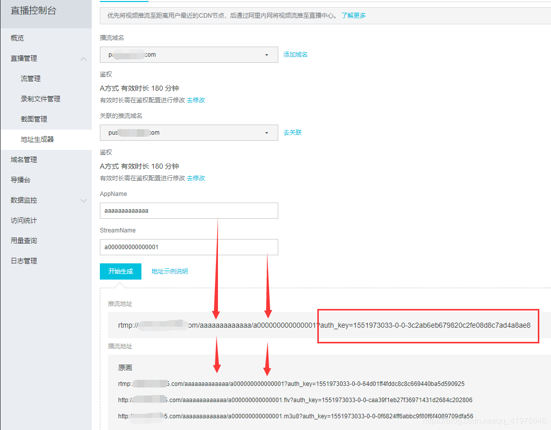 //------------------- 阿里云視頻直播控制臺(tái) 地址生成器 鑒權(quán)設(shè)置 -----------