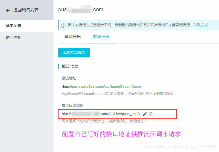 推流與播流的鏈接都是以一定的規(guī)則自己拼起來的,首先要在域名配置