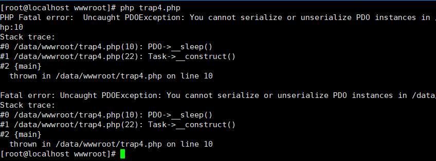 //注意這里會報錯,不能對PDO實例進行序列化或反序列化