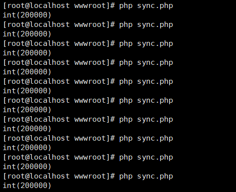 多次運行后,$cnt的值是不確定的。如下圖所示:
