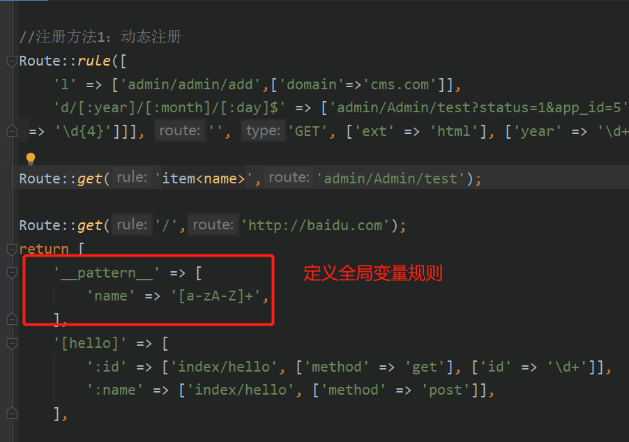 '路由規(guī)則2'=>['路由地址和參數(shù)','路由參數(shù)(數(shù)組)','變量規(guī)則(數(shù)組)']