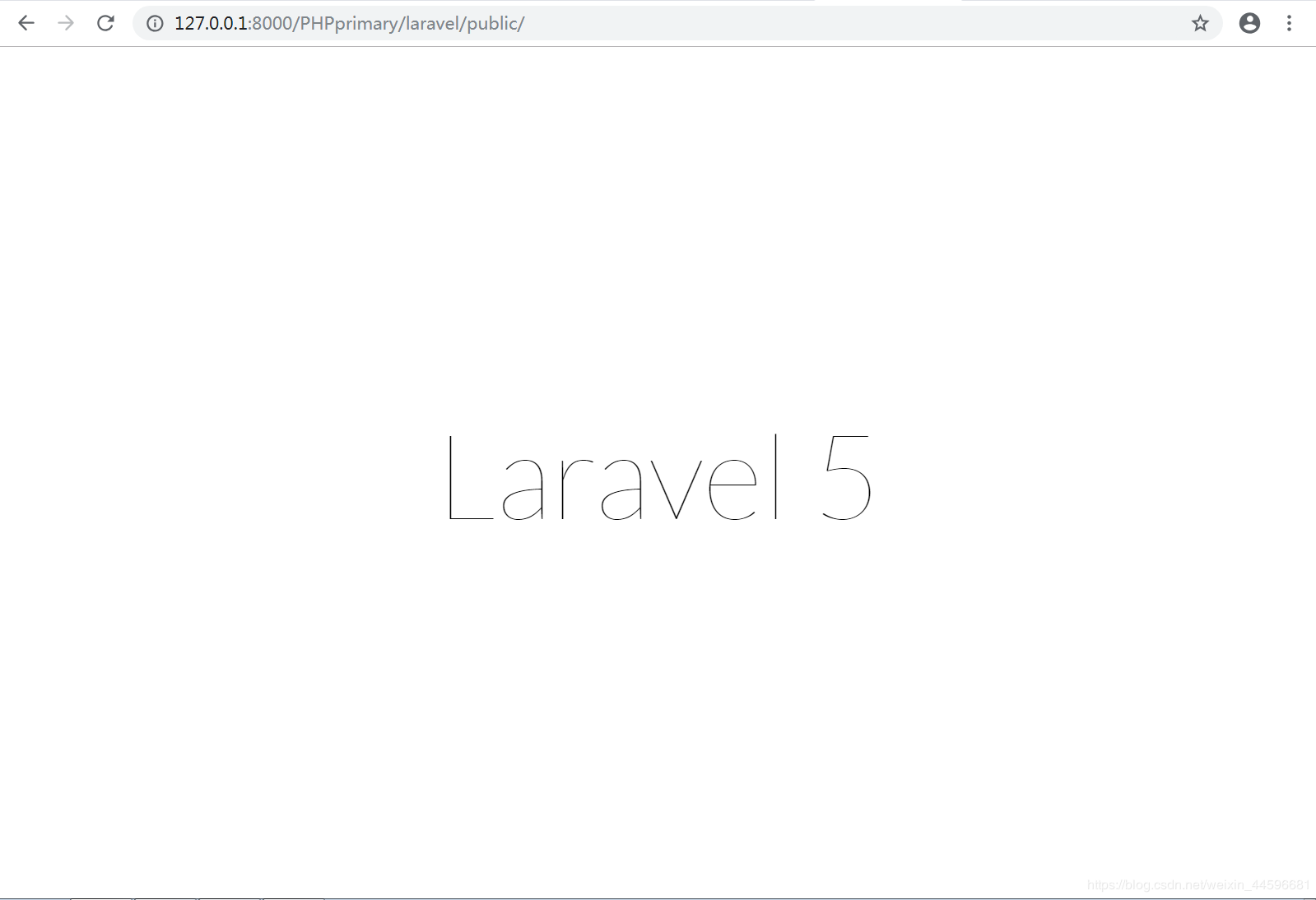 這里我們要注意的是,我把laravel解壓到了一個名為PHPprimary的文件夾里,你們如果是直接解壓到htdocs里則只需在127.0.0.1:8000后面輸入/laravel/public,若正常顯示圖片里的Laravel | 5則表示安裝成功