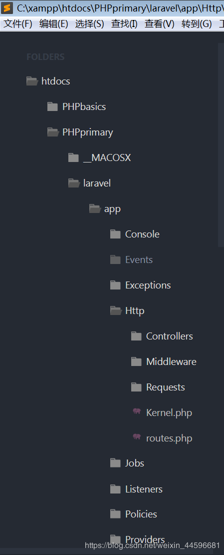 里面還有些具體的文件介紹請附錄:laravel目錄結構介紹